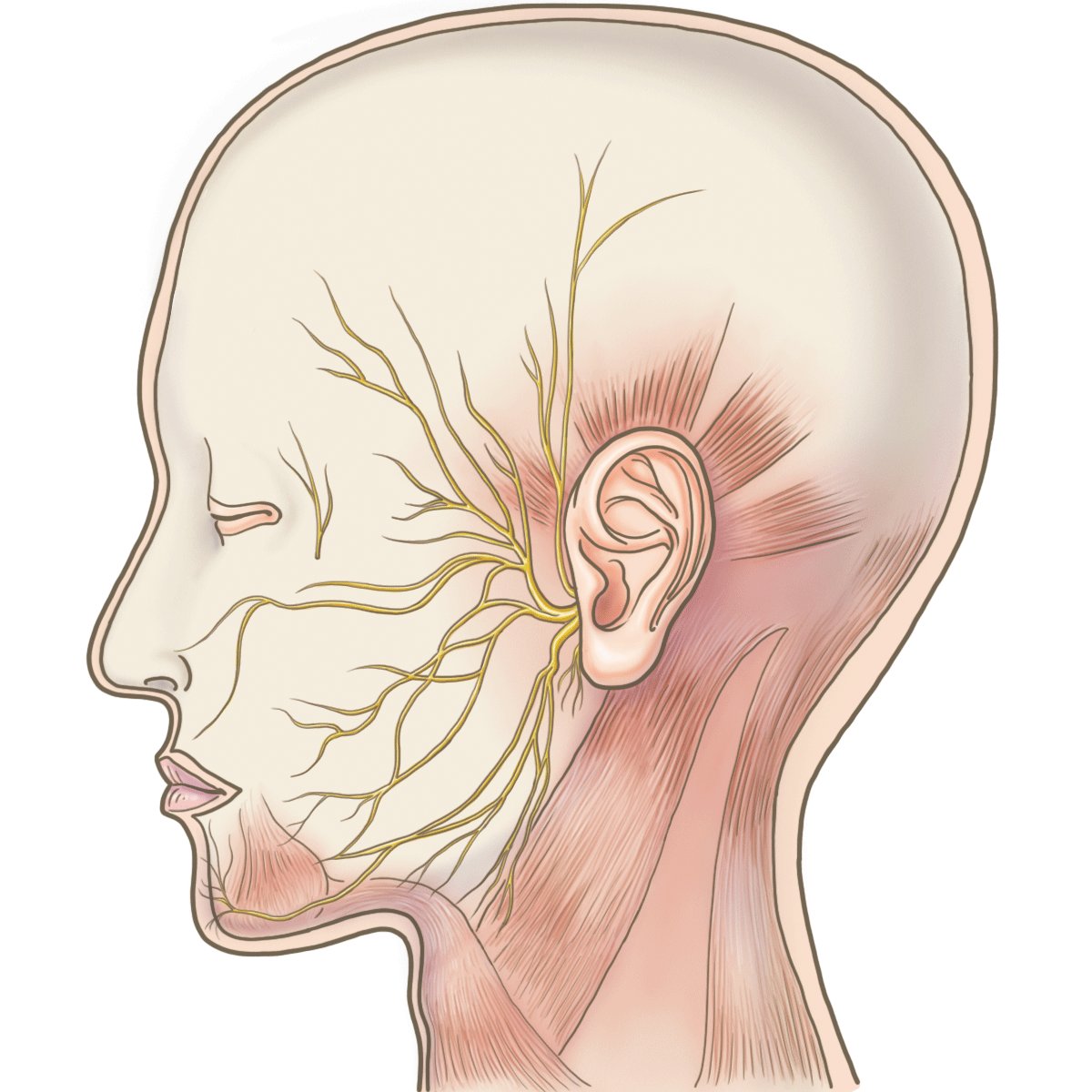 顔面神経が麻痺すると表情筋を動かすことが困難となり、特有の顔面を呈するようになります。